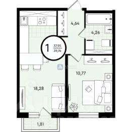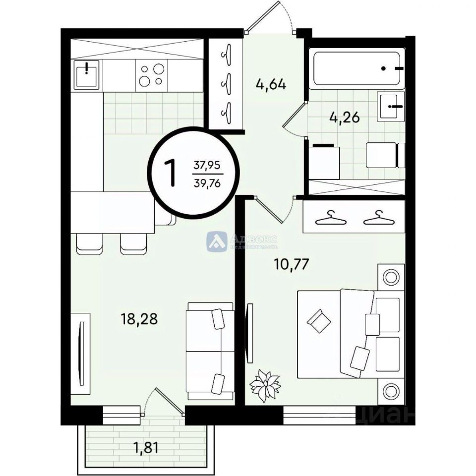 функциональная планировка площадью 39,76 кв.м., где каждая деталь создана для максимального удобства.