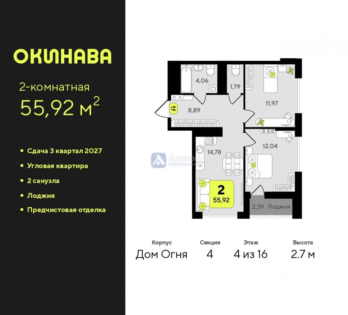 Представляем вашему вниманию уникальный объект недвижимости - квартиру новостройку с двумя комнатами на 10 этаже 16-этажного дома. Общая площадь квартиры составляет 55.92 кв.м., при этом кухня имеет площадь 14.78 кв.м. Это модный и презентабельный вариант жилья, который сейчас предлагается оснащенным чистовой отделкой, но без ремонта.