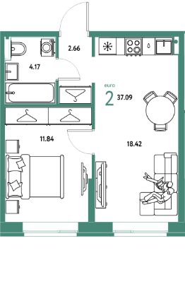Продаётся 2-комнатная квартира в строящемся доме (ГП-9 (дом Хельсинки, Защитников Отечества, 15)), срок сдачи: IV-кв. 2027, общей площадью 37.09 кв.м., на 12 этаже. В жилом комплексе "Европейский берег" предусмотрено строительство отдельно стоящих, закрытых, надземных паркингов. Попасть к своему автомобилю Вы сможете прямо из подъезда, через теплый переход, не выходя при этом на улицу. Парковочное место уже включено в стоимость большинства квартир. В квартирах комплекса "Европейский берег" гостиная объединена с кухней, что позволяет создать комфортное пространство для семейного времяпрепровождения. Проектом предусмотрено большое количество 4 и 5 комнатных квартир, для того, чтобы у каждого была своя комната.