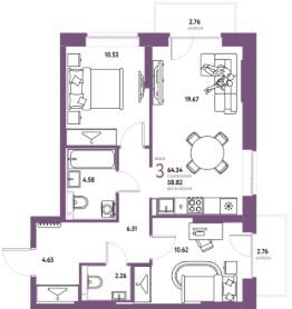 Продаётся 3-комнатная квартира в строящемся доме (ГП-9 (дом Хельсинки, Защитников Отечества, 15)), срок сдачи: IV-кв. 2027, общей площадью 64.34 кв.м., на 5 этаже. В жилом комплексе "Европейский берег" предусмотрено строительство отдельно стоящих, закрытых, надземных паркингов. Попасть к своему автомобилю Вы сможете прямо из подъезда, через теплый переход, не выходя при этом на улицу. Парковочное место уже включено в стоимость большинства квартир. В квартирах комплекса "Европейский берег" гостиная объединена с кухней, что позволяет создать комфортное пространство для семейного времяпрепровождения. Проектом предусмотрено большое количество 4 и 5 комнатных квартир, для того, чтобы у каждого была своя комната.