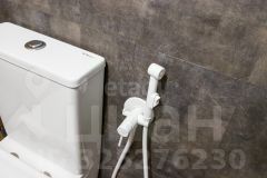 Стильный и просторный санузел с большой ванной 180 см для релакса, гигиеническим душем и теплым полом.