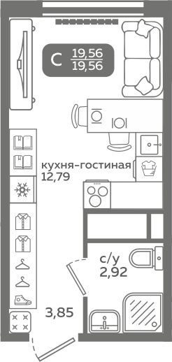 Прямая продажа от застройщика! Продается студия в строящемся ЖК "Меридиан Слобода", срок сдачи: I-кв. 2027, общей площадью 19.56 м², на 20 этаже из 21. Площадь кухни — 12.79 м².