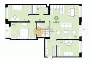 Квартира формата 3+ с просторной кухней-гостиной, мастер-спальней и совмещенным санузлом. Все комнаты изолированы и правильной формы. Свободная прихожая с нишей для шкафа. Постирочная.