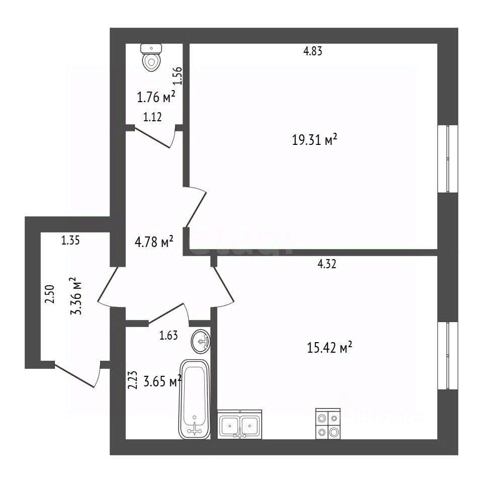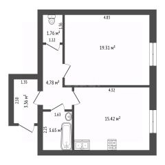 Общая площадь: 45,7 м²