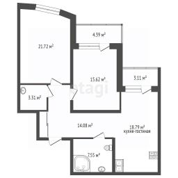 двух комнат 21,72м2 и 15,62м2,