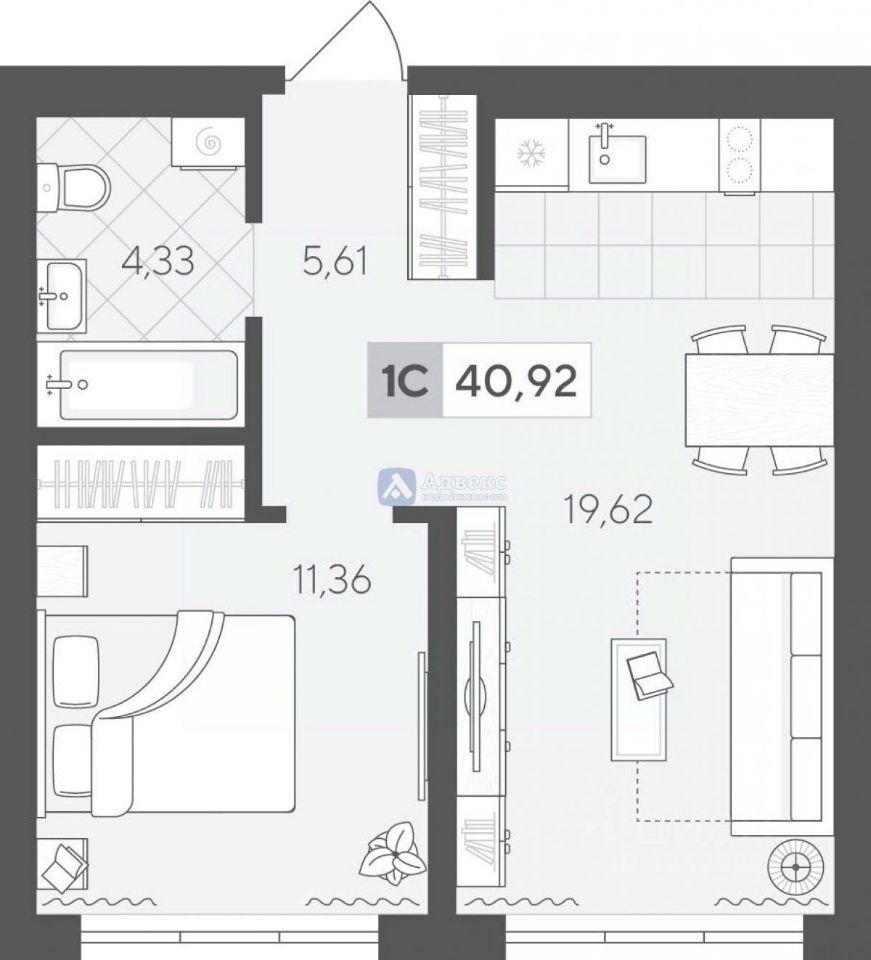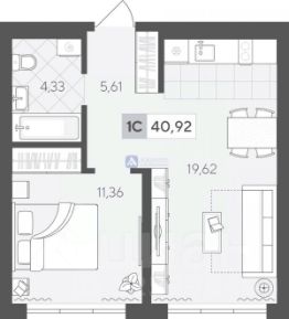 Предлагаем вашему вниманию уютную квартиру в новостройке на 9 этаже. Это однокомнатное жилье площадью 40.92 кв.м. с просторной кухней 19,62 кв.м. Квартира находится в жилом комплексе с изысканным дизайном и современными коммуникациями.