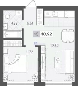 Продаётся просторная квартира в новостройке, всего на 6 этаже, с площадью 40.92 кв.м. Она имеет одну комнату и просторную кухню площадью 19,62 кв.м. Это отличный вариант для тех, кто хочет недорогую, но просторную квартиру.