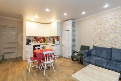 Квартира формата 1+ в современном жилом комплексе "Звездный" готова к заселению благодаря выполненному качественному ремонту, что исключает дополнительные вложения. Удачная планировка "распашонка" обеспечивает четкое зонирование: изолированная спальня и просторная кухня-гостиная 26 кв м . Теплая остекленная лоджия функциональна в любое время года. Санузел раздельный, полностью отделан кафелем. Объект расположен на среднем этаже в закрытом, безопасном дворе. Инфраструктура комплекса включает круглосуточное видеонаблюдение на территории и в подъездах, профессиональную управляющую компанию и современную детскую площадку. ЖК отличается транспортной доступностью и развитой социальной инфраструктурой в районе. Квартира с безупречным юридическим статусом — один собственник, все документы в порядке. Это оптимальное решение для комфортной жизни с гарантией спокойствия и безопасности.