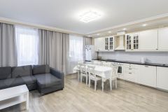 Наша квартира не исключение - у нее отличная планировка! Просторная кухня-гостиная, где достаточно места не только для большой семьи, но и на дружеские посиделки. И Три спальни. На самом деле, одна из них по задумке застройщика - зал. Но так как кухня-гостиная и без того большая, то эта комната используется как большая детская! Санузел, конечно же, раздельный. Квартира с симпатичным и аккуратным ремонтом в ненавязчивых тонах, которые не помешают вашему замыслу интерьера, а станут для него хорошей базой. А кухня в квартире стоит ИКЕА - качество, стиль!