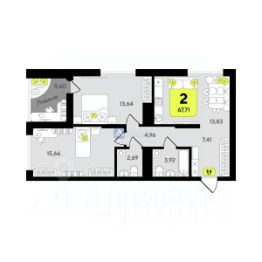 Продается модная и презентабельная двухкомнатная квартира в новостройке! Площадь 67.71 кв.м., находится на 3 этаже 10-этажного дома. Кухня площадью 13.83 кв.м.