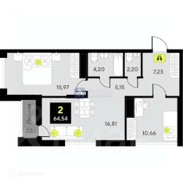 Продается квартира в новостройке на 15 этаже 15-этажного дома. Площадь квартиры составляет 64.54 кв.м., из которых на кухню приходится 16.81 кв.м. Этот модный и презентабельный вариант подойдет как для жизни, так и для инвестиций.