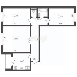 • Просторные комнаты: 18.8 кв.м., 12.9 кв.м., 12.4 кв.м.