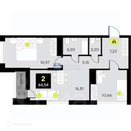 Продается стильная 2-комнатная квартира в новом доме на 6 этаже 15-этажного здания. Общая площадь квартиры составляет 64.54 кв.м., при этом кухня имеет площадь 16.81 кв.м. Это идеальное пространство для семьи с детьми или как инвестиция в недвижимость.