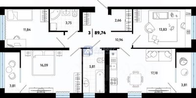 Продаётся 3-комнатная квартира в новостройке на 14 этаже 17-этажного дома. Общая площадь квартиры составляет 89.74 кв.м., кухня 17.18 кв.м. Помимо этого, в квартире предоставляется просторная лоджия с потрясающим видом.