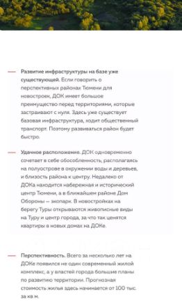 Инвестиционно привлекательный и уже сейчас очаровательный для жизни. Набережная, много живой природы, и самое главное сразу несколько застройщиков занимаются развитием этой территории - каждый застройщик помимо жилых домов взял обязательства по строительству Соц. Объектов: школы, сады, больница, ТЦ, спортзал, библиотека, пожарная часть, пешеходный бульвар, мост в Зареку и все это до 33 года!