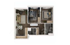 Внутреннее пространство квартиры включает в себя просторную кухню-гостиную, две отдельные спальни и два санузла. Один из санузлов можно легко переоборудовать под любое вспомогательное помещение — кабинет, гардероб или даже небольшую фитнес-зону.