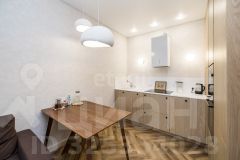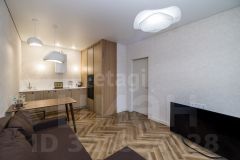 В квартире произведен свежий ремонт по дизайн проекту. Произведена качественная электрическая разводка, электро щиток разместили в квартире. На полу кварц винил, на стенах обои, в с/у плитка и керамогранит производства Испании, установлен тёплый пол в коридоре и в санузлах. Вся сантехника и смесители европейского производства. Потолок натяжной. Установлены двери скрытого монтажа, раздвижная дверь в гардеробную, подоконники и кухоный гарнитур - всё из шпона дуба.