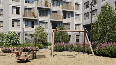Смысловая ось квартала — широкая главная улица с высаженными вдоль неё высокими деревьями. Они создают тень и работают как шумо- и пылезащитные экраны. Это место сосредоточения основных пешеходных и транспортных потоков, на сторону которых мы ориентировали большинство коммерческих помещений. Отсюда жители могут свернуть на тихие соседские улицы и попасть на внутриквартальную площадь — ещё одну точку притяжения. #2MbcFI