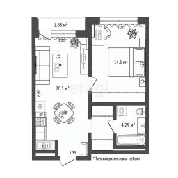 3. Мега-удачная планировка: холл, где разместилась зона хранения , кухня-столовая-гостиная площадью 20.5 кв.м. с выходом на балкон, просторная спальня 14.5 кв. м, совмещенный сан.узел 4.29 кв.м.