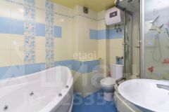 Санузел совмещенный и оформлен в стильном кафеле, здесь установлена ванна с джакузи для расслабляющих вечеров, а также душевая кабина с функцией "турецкая баня" для настоящего спа-опыта у вас дома. Просторная остекленная лоджия станет идеальным местом как для работы, так и для отдыха: наслаждайтесь прекрасными видами и свежим воздухом.