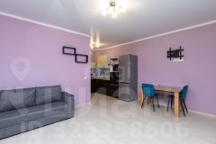 В квартире имеется удобное спальное место — раскладывающийся диван на две персоны. Шкаф-купе и полностью укомплектованная кухня с новейшей техникой: встроенный холодильник, варочная панель, духовой шкаф, вытяжка, а также стиральная машина. Санузел совмещен, оборудован ванной и раковиной.