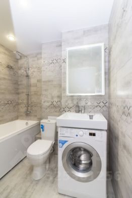 Квартира полностью укомплектована: остаётся всё, что видите на фото — кондиционер, холодильник, стиральная машинка, кухонный гарнитур с плитой, диван, прихожая.
