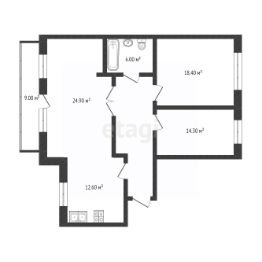 • Две просторные спальни: Изолированные комнаты площадью 14,3 и 18,4 кв.м. личное пространство для каждого члена семьи.