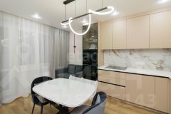 Кухня: просторная, со встроенным кухонным гарнитуром и техникой (варочная панель и вытяжка), продуманные места для хранения, все розетки выведены по дизайн-проекту
