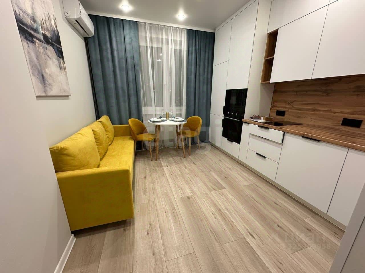 ПЛАНИРОВКА. Функциональная планировка. Просторная кухня-гостиная(11 кв.м.) имеет грамотное зонирование. В обеденной зоне расположен кухонный гарнитур со встроенной бытовой техникой: холодильник, духовой шкаф, варочная панель, микроволновая печь, стильный кухонный стол и стулья. В зоне отдыха установлен раскладной диван. Для комфорта установлена сплит-система.