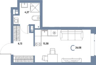 Продаётся студия в сданном доме (Подгорная, 61к1 (Дом Ученых ГП-3)), срок сдачи: III-кв. 2025, общей площадью 26.08 кв.м., на 8 этаже. Новый жилой комплекс "Авторский" от застройщика ГК "Страна Девелопмент" расположился в городе Тюмень в границах улиц Полевая - Комбинатская -