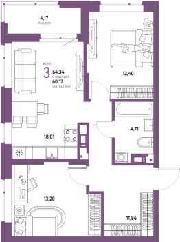 Продаётся 3-комнатная квартира в сданном доме (Подгорная, 61к1 (Дом Ученых ГП-3)), срок сдачи: III-кв. 2025, общей площадью 64.34 кв.м., на 11 этаже. Новый жилой комплекс "Авторский" от застройщика ГК "Страна Девелопмент" расположился в городе Тюмень в границах улиц Полевая - Комбинатская -