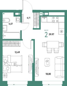 Продаётся 2-комнатная квартира в сданном доме (Подгорная, 61к1 (Дом Ученых ГП-3)), срок сдачи: III-кв. 2025, общей площадью 39.97 кв.м., на 11 этаже. Новый жилой комплекс "Авторский" от застройщика ГК "Страна Девелопмент" расположился в городе Тюмень в границах улиц Полевая - Комбинатская -