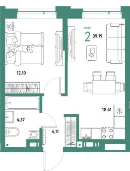 Продаётся 2-комнатная квартира в сданном доме (Подгорная, 61к1 (Дом Ученых ГП-3)), срок сдачи: III-кв. 2025, общей площадью 39.19 кв.м., на 16 этаже. Новый жилой комплекс "Авторский" от застройщика ГК "Страна Девелопмент" расположился в городе Тюмень в границах улиц Полевая - Комбинатская -