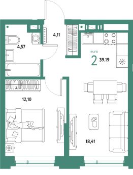 Продаётся 2-комнатная квартира в сданном доме (Подгорная, 61к1 (Дом Ученых ГП-3)), срок сдачи: III-кв. 2025, общей площадью 39.19 кв.м., на 16 этаже. Новый жилой комплекс "Авторский" от застройщика ГК "Страна Девелопмент" расположился в городе Тюмень в границах улиц Полевая - Комбинатская -
