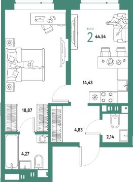 Продаётся 2-комнатная квартира в сданном доме (Подгорная, 61к1 (Дом Ученых ГП-3)), срок сдачи: III-кв. 2025, общей площадью 44.54 кв.м., на 3 этаже. Новый жилой комплекс "Авторский" от застройщика ГК "Страна Девелопмент" расположился в городе Тюмень в границах улиц Полевая - Комбинатская -