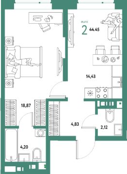 Продаётся 2-комнатная квартира в сданном доме (Подгорная, 61к1 (Дом Ученых ГП-3)), срок сдачи: III-кв. 2025, общей площадью 44.45 кв.м., на 6 этаже. Новый жилой комплекс "Авторский" от застройщика ГК "Страна Девелопмент" расположился в городе Тюмень в границах улиц Полевая - Комбинатская -