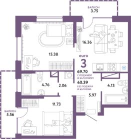 Продаётся 3-комнатная квартира в сданном доме (Полевая, 108 (Дом Изобретателей ГП-1)), срок сдачи: IV-кв. 2024, общей площадью 69.7 кв.м., на 4 этаже. Новый жилой комплекс "Авторский" от застройщика ГК "Страна Девелопмент" расположился в городе Тюмень в границах улиц Полевая - Комбинатская -