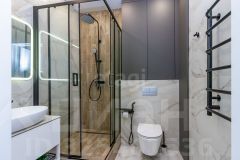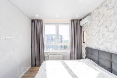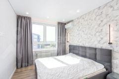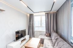 В квартире выполнен современный ремонт, с использованием качественных отделочных материалов. Во всех трех комнатах установлены кондиционеры. Установлены фильтры для воды и проточная нагревательная система в ванной. На стенах красивые обои, на полу кварцвинил, матовые натяжные потолки, установлены межкомнатные двери. В кухне-гостиной трекинговая система освещения.