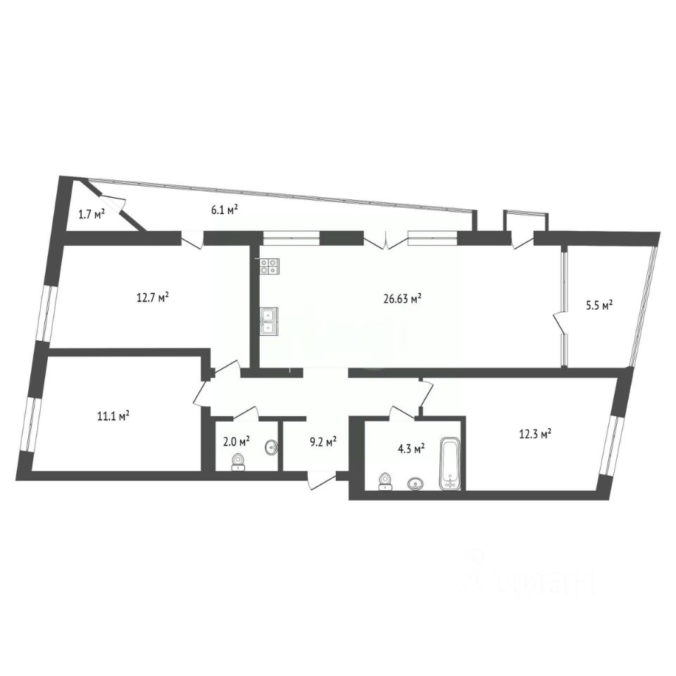В продаже современная квартира формата 3+ площадью 78м2 в жилом комлексе "Андерсен-Парк"
