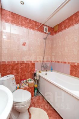 • Современный санузел: Ванна и туалет совмещены, отделаны современной плиткой.