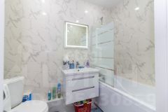 В квартире выполнен современный ремонт, есть вся необходимая мебель - кухонный гарнитур, обеденная зона, вместительный шкаф в прихожей, диван в гостиной. Установлена хорошая сантехника, качественные двери. Высокий этаж - из окон прекрасный вид!