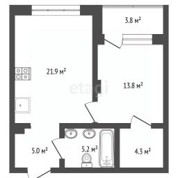 Продаётся просторная квартира формата 1+, расположенная на 2 этаже 4-х этажного дома комфорт-класса в жилом комплексе "Эклипт". Очень удачная и комфортная планировка: просторная кухня-гостиная 20 кв.м., спальня 14 кв.м. с выходом на лоджию (4,2 кв.м.) и гардеробной, совмещённый сан. узел порядка 5 кв.м., просторный хол с нишей под шкаф. Не смотря на то, что жилой комплекс малоэтажный, каждый подъезд оборудован современным грузопассажирским лифтом.