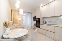 В квартире выполнен современный ремонт с использованием качественных материалов. Комнаты изолированные, правильной формы. Квартира очень светлая, теплая, с прекрасной шумоизоляцией, имеет комфортное расположение и комфортный этаж.