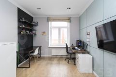 Ремонт выполнен по дизайн проекту, где учтены все особенности квартиры. Гостиная 40м2, совмещенная с кухней позволяет поставить большой стол для дружной семьи и проводить вместе больше времени. Хозяйская спальня и две спальни для детей/подростков в нейтральных тонах; "детский" туалет и ванная комната с душевой кабиной для удобства. В квартире роскошное освещение, а также лофтовые перегородки и большие окна (больше чем на других этажах на треть) добавляют света и объёма в просторную гостиную.