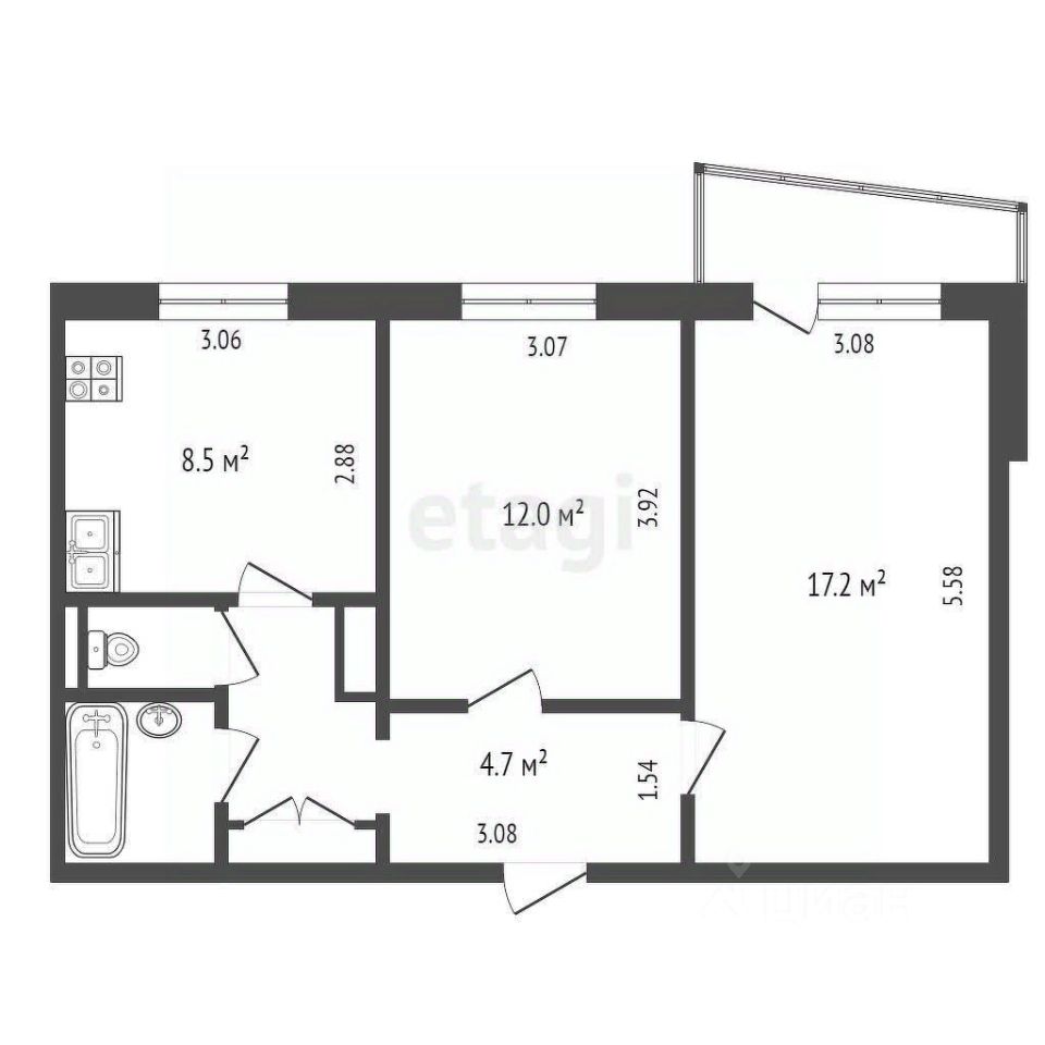 Просторная кухня площадью 8,3 м² выполнена в квадратной форме, что делает ее функциональной и удобной для приготовления любимых блюд. Комнаты площадью 12 и 17 м² обеспечат вам комфорт и уют. Застекленная лоджия — отличное место для утреннего кофе или вечернего отдыха. Окна квартиры выходят на тихий школьный двор, что гарантирует спокойствие и уединение.