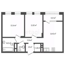 - Общая площадь составляет 60 квадратных метров, благодаря чему жильё отличается простором и удобством проживания даже большой семьи.