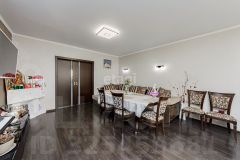 Просторная кухня гостиная 40 кв.м и три изолированные комнаты, что очень удобно! Так же в квартире два сан.узла, постирочная, балкон и лоджия. В квартире выполнен современный ремонт, с применением дорогостоящих материалов. На полу везде — ламинат, на кухне — керамогранит. Теплые полы установлены на кухне, в сан.узлах, на лоджии, балконе, в прихожей; кондиционеры во всех комнатах; водонагреватель на 100 литров; видеодомофон; натяжные потолки.