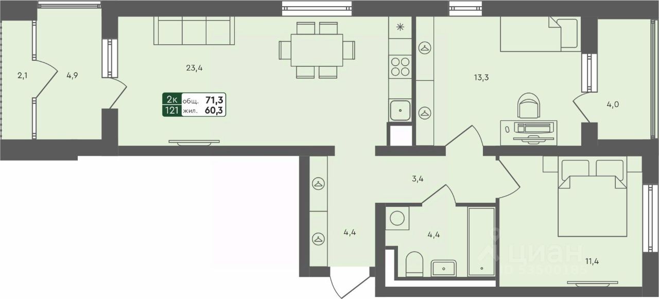 Продаётся 2-комнатная квартира в строящемся доме (ГП-4 (Березовая, 1)), срок сдачи: II-кв. 2027, общей площадью 71.3 кв.м., на 2 этаже. Проект в формате "Дома не выше сосен" отражает синтез великолепной архитектуры, престижной инфраструктуры и разумной стоимости. Жилье повышенного качества по доступной цене городского типа (квартиры), таунхаусы и индивидуальные дома с земельными участками характеризуются высокой транспортной доступностью исторического Тобольского тракта и формируют гармоничную и экологичную среду для комфортного проживания.