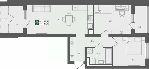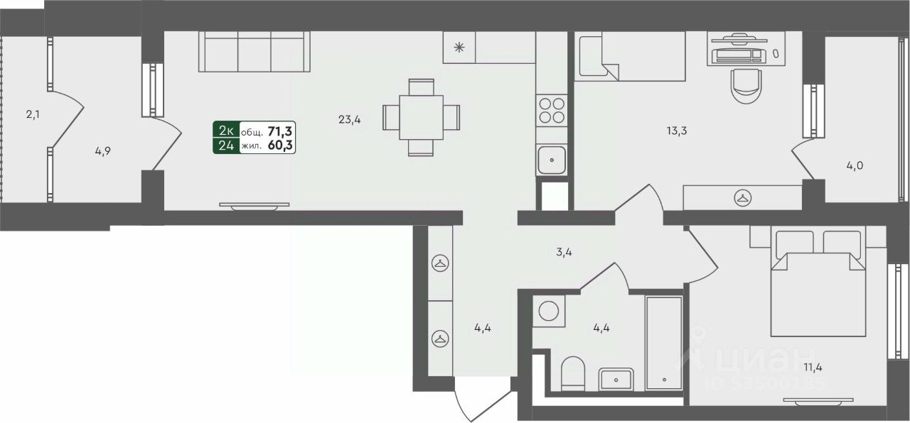 Продаётся 2-комнатная квартира в строящемся доме (ГП-4 (Березовая, 1)), срок сдачи: II-кв. 2027, общей площадью 71.3 кв.м., на 2 этаже. Проект в формате "Дома не выше сосен" отражает синтез великолепной архитектуры, престижной инфраструктуры и разумной стоимости. Жилье повышенного качества по доступной цене городского типа (квартиры), таунхаусы и индивидуальные дома с земельными участками характеризуются высокой транспортной доступностью исторического Тобольского тракта и формируют гармоничную и экологичную среду для комфортного проживания.