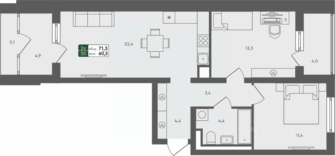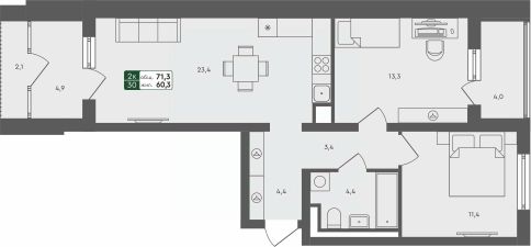 Продаётся 2-комнатная квартира в строящемся доме (ГП-4 (Березовая, 1)), срок сдачи: II-кв. 2027, общей площадью 71.3 кв.м., на 3 этаже. Проект в формате "Дома не выше сосен" отражает синтез великолепной архитектуры, престижной инфраструктуры и разумной стоимости. Жилье повышенного качества по доступной цене городского типа (квартиры), таунхаусы и индивидуальные дома с земельными участками характеризуются высокой транспортной доступностью исторического Тобольского тракта и формируют гармоничную и экологичную среду для комфортного проживания.